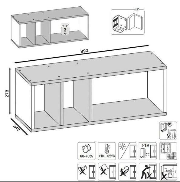 Полка навесная Сидней 15.57 белый премиум, черный (универсальная сборка)