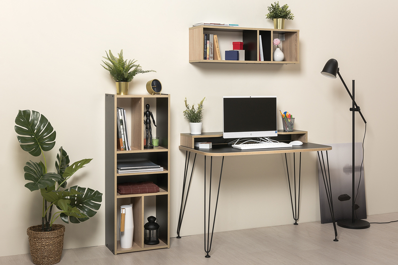 Полка навесная Базис 3 09.127 черный, дуб сонома