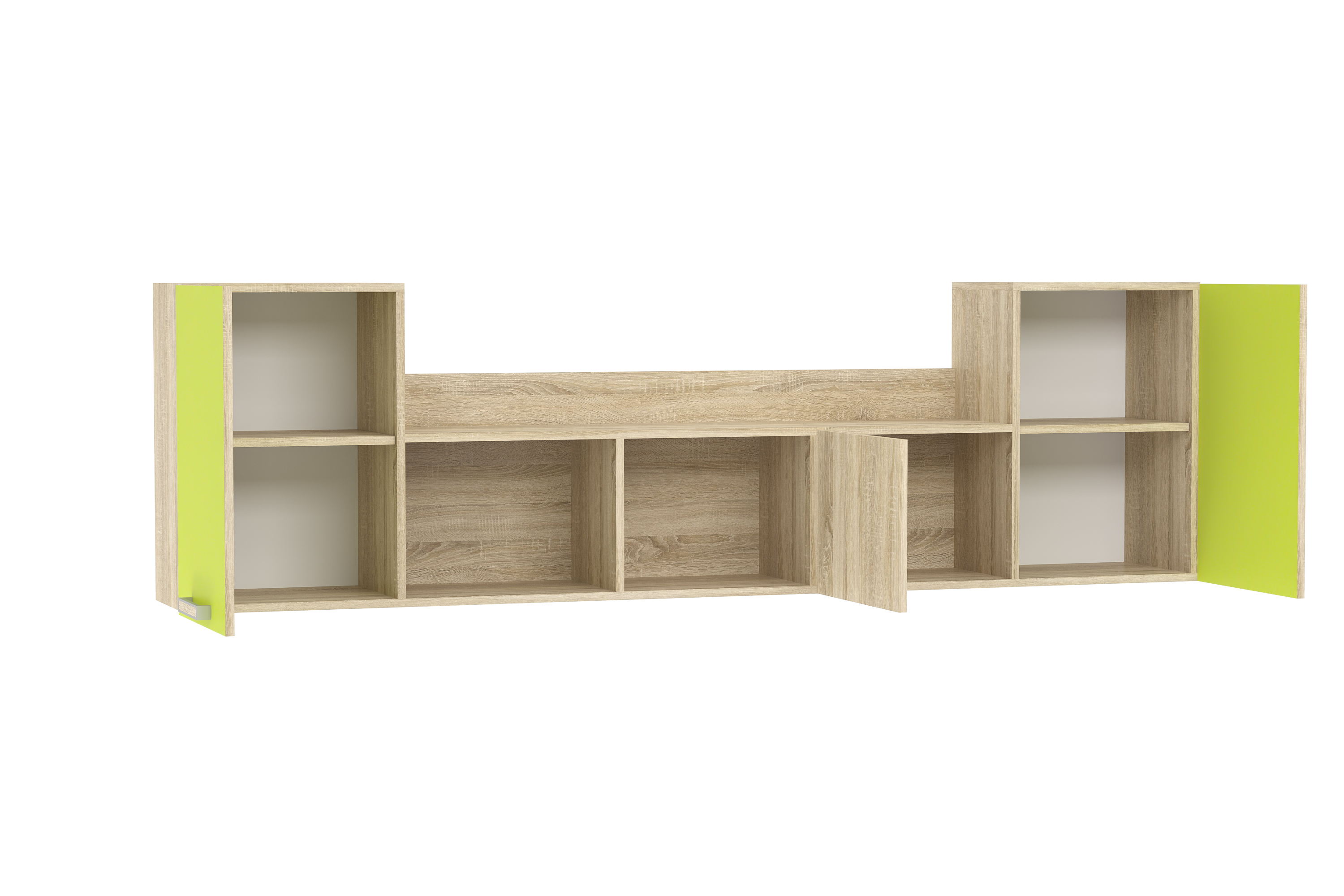 Полка НМ 011.39-01 М сделает рабочую зону в детской еще более функциональной. Модуль состоит из трех закрытых отделений и двух открытых ниш. В боковых отделениях предусмотрена полка для размещения книг. Открытые ниши подойдут для размещения декора, фотографий или игрушек.