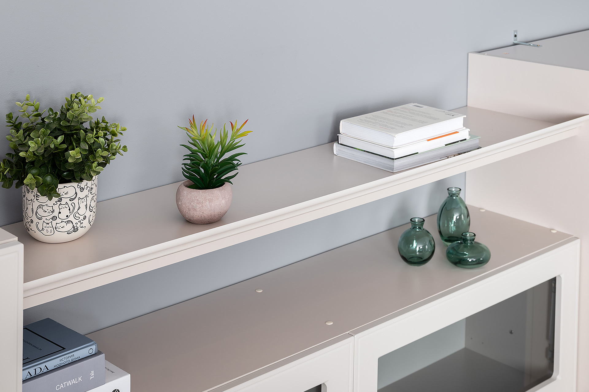 Для более завершенного образа, к шкафам можно дополнительно приобрести карнизы.