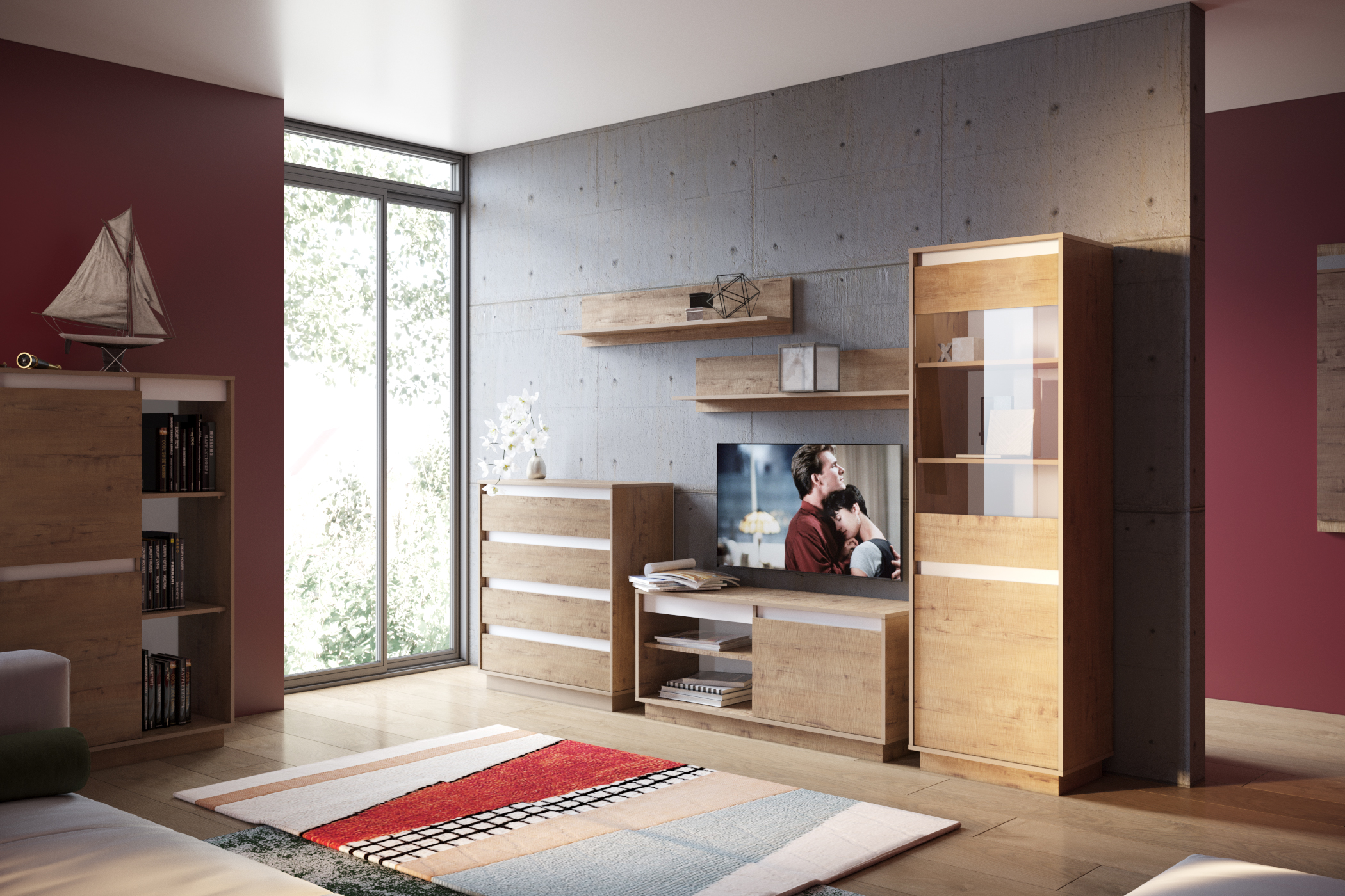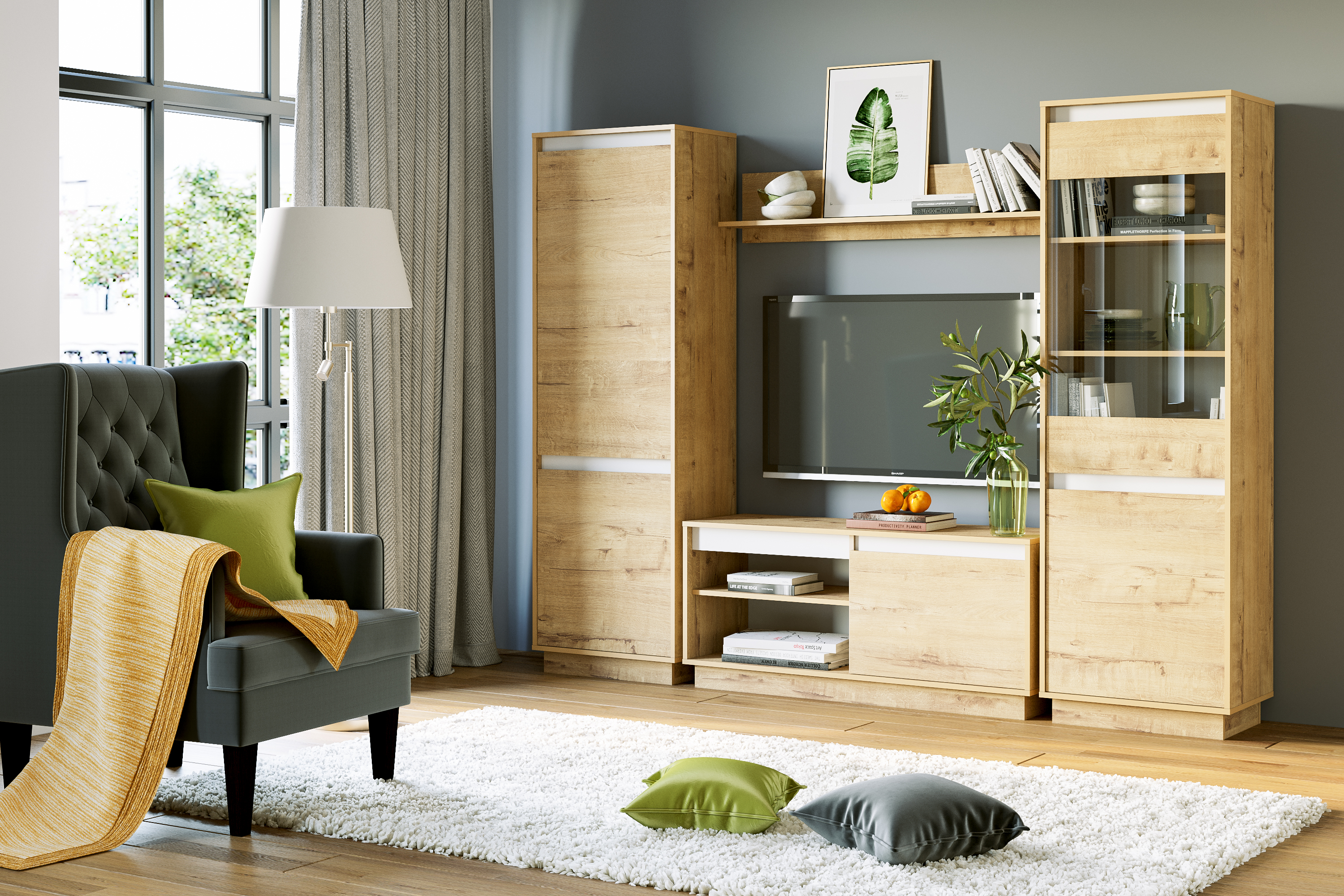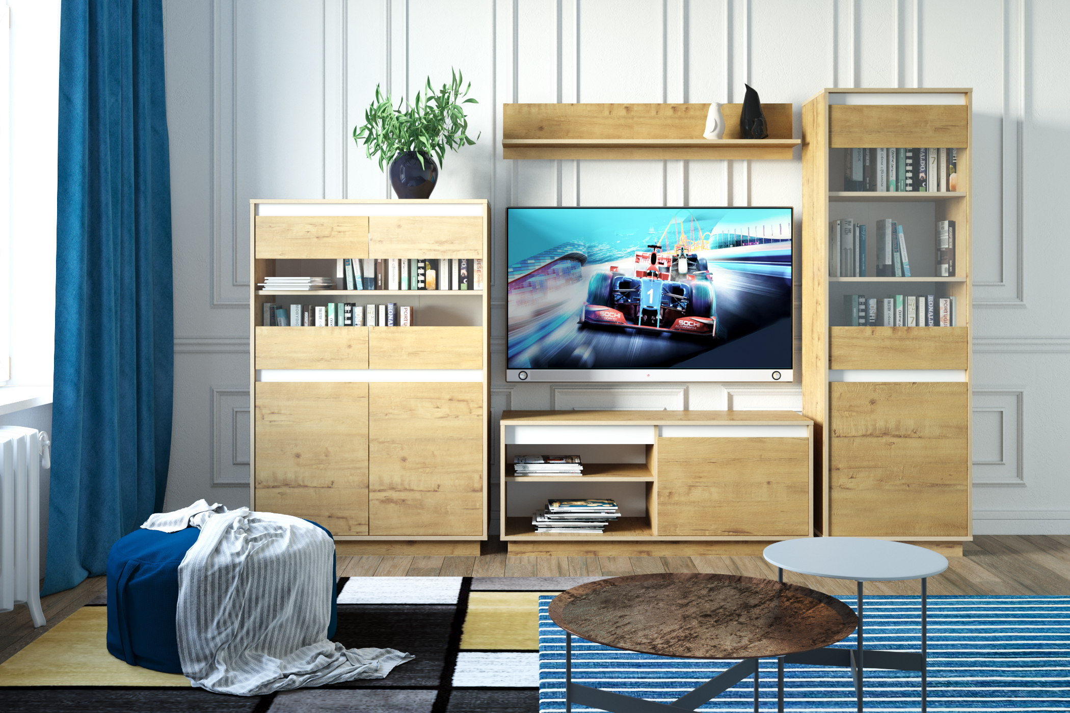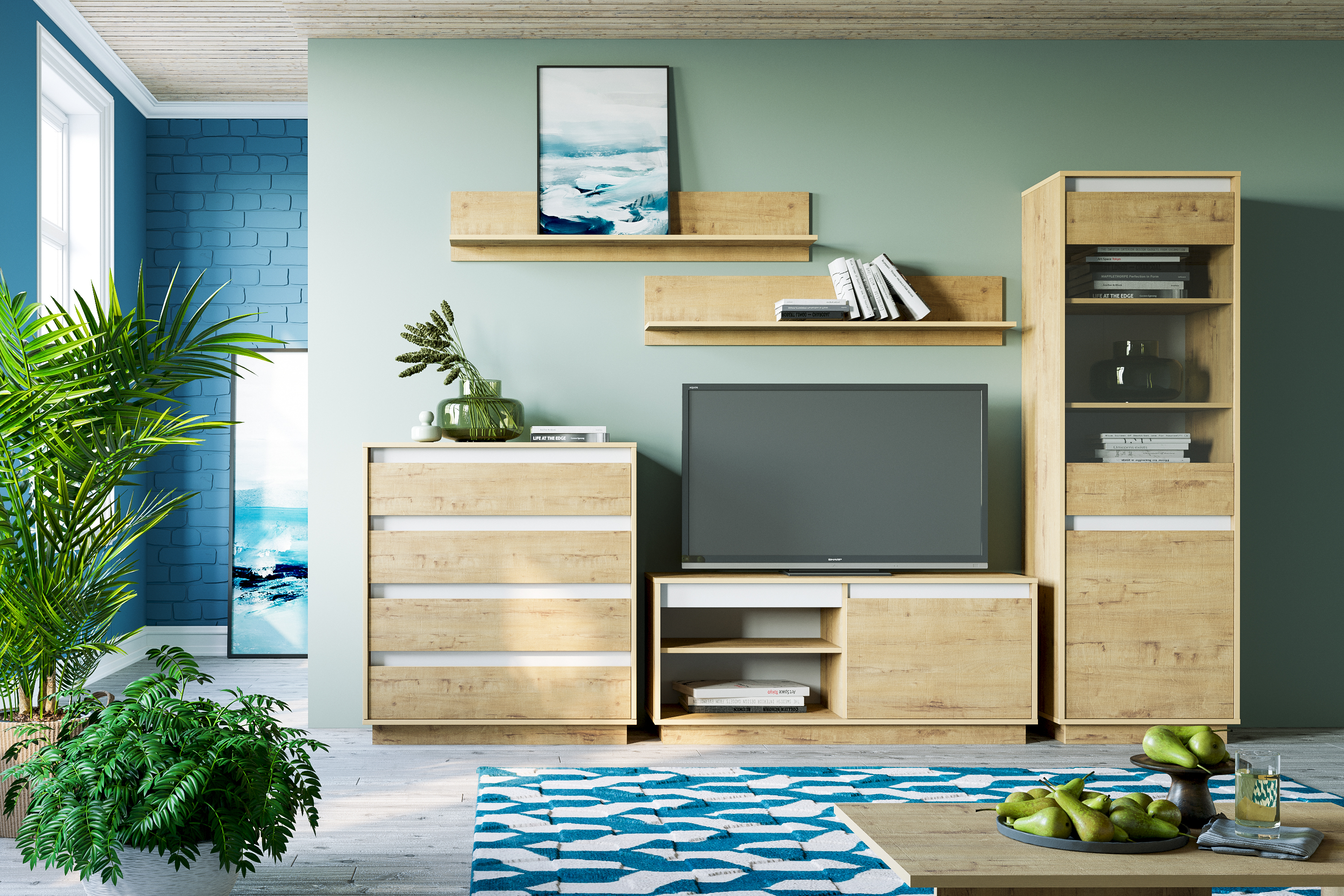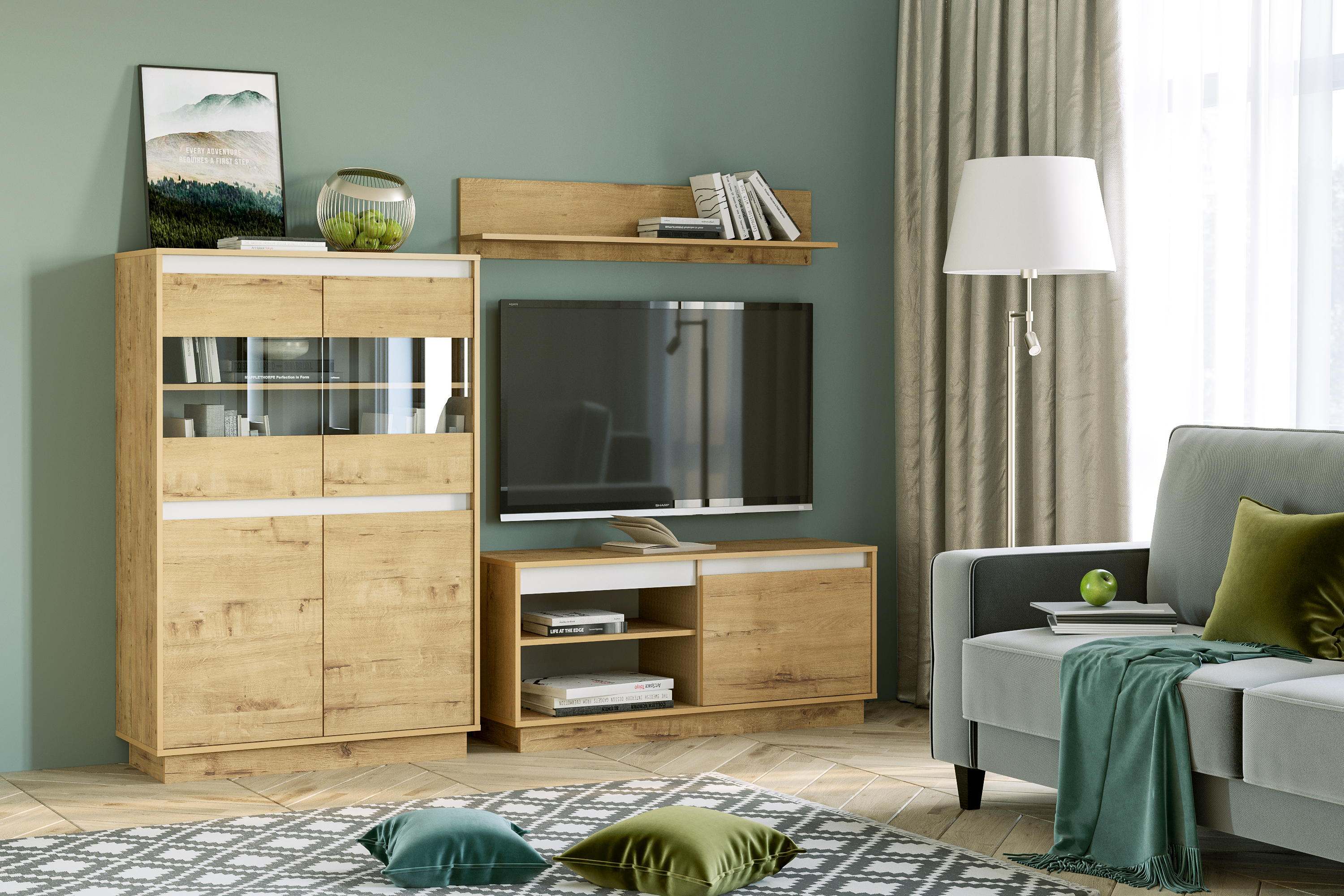 Полка навесная в гостиную Альба дуб золотой CRAFT, белый премиум