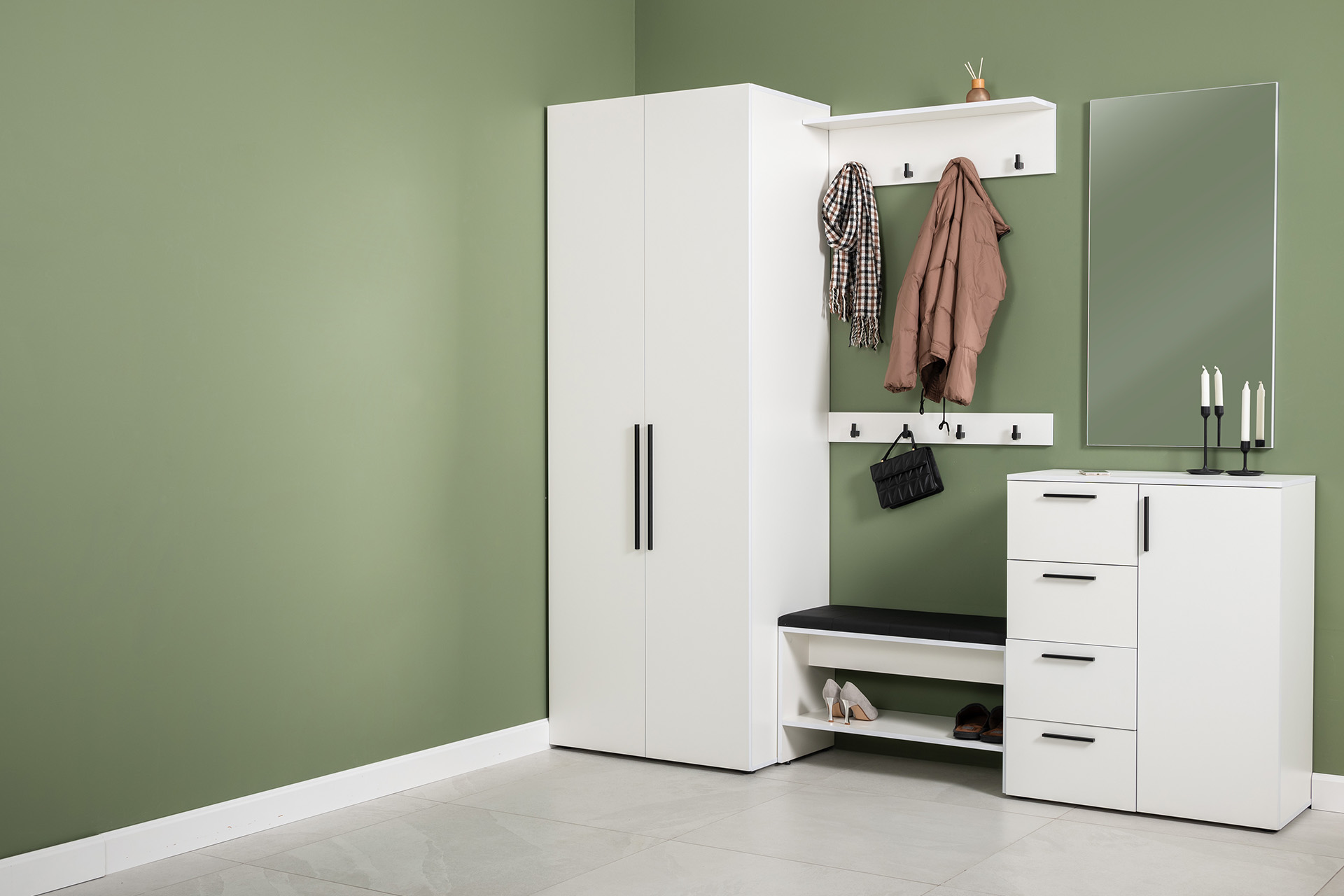 Нейтральный белый цвет визуально расширит ограниченное пространство прихожей.