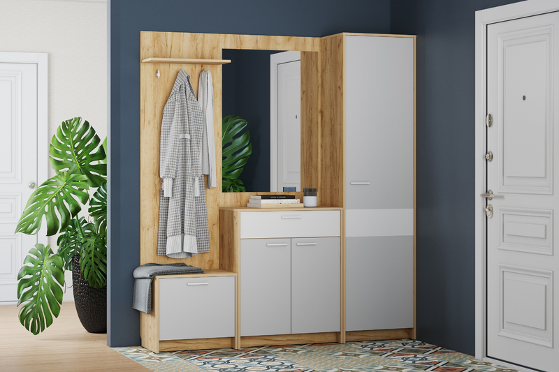 Прихожая Юнона Композиция 1 дуб белый CRAFT, серый шифер