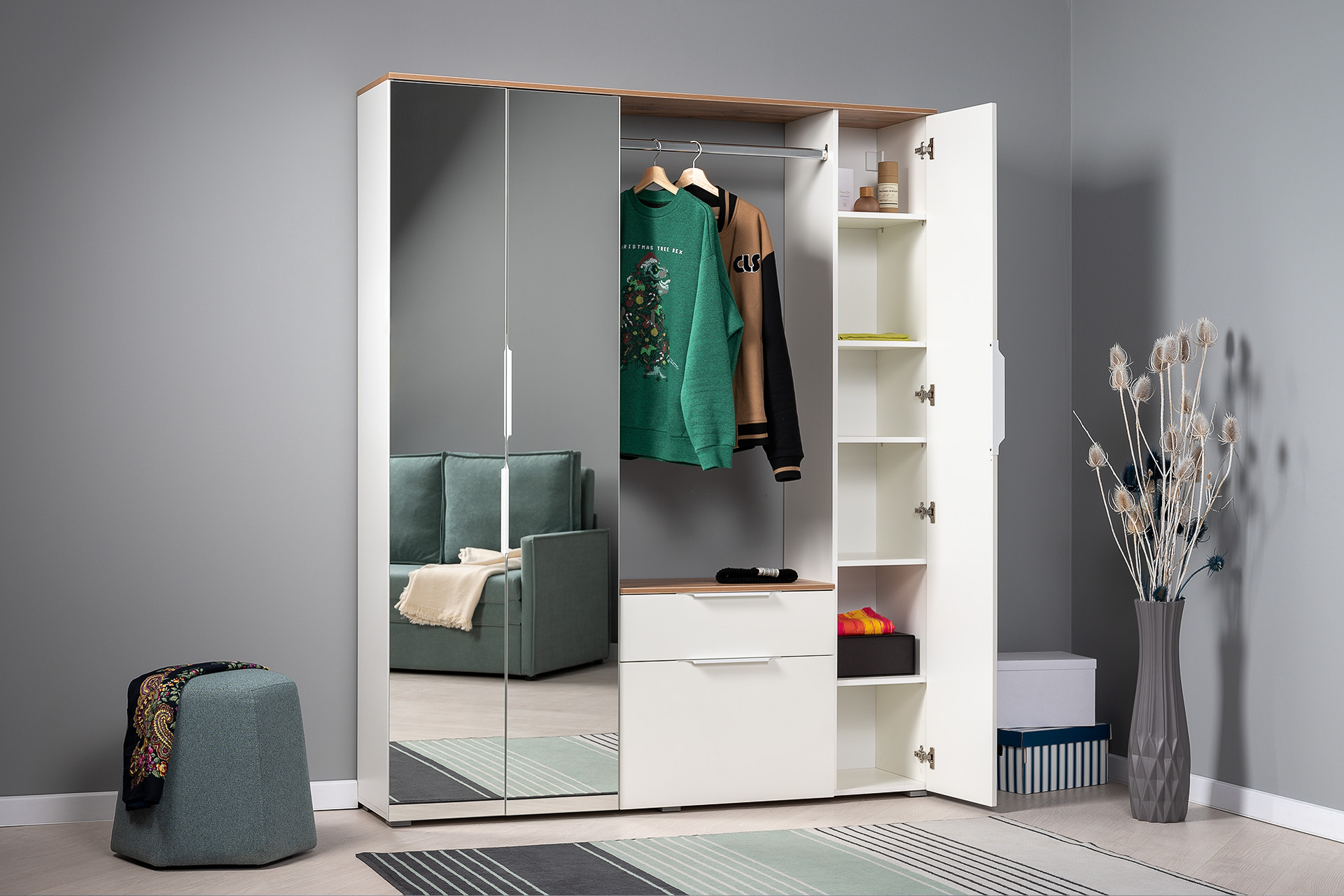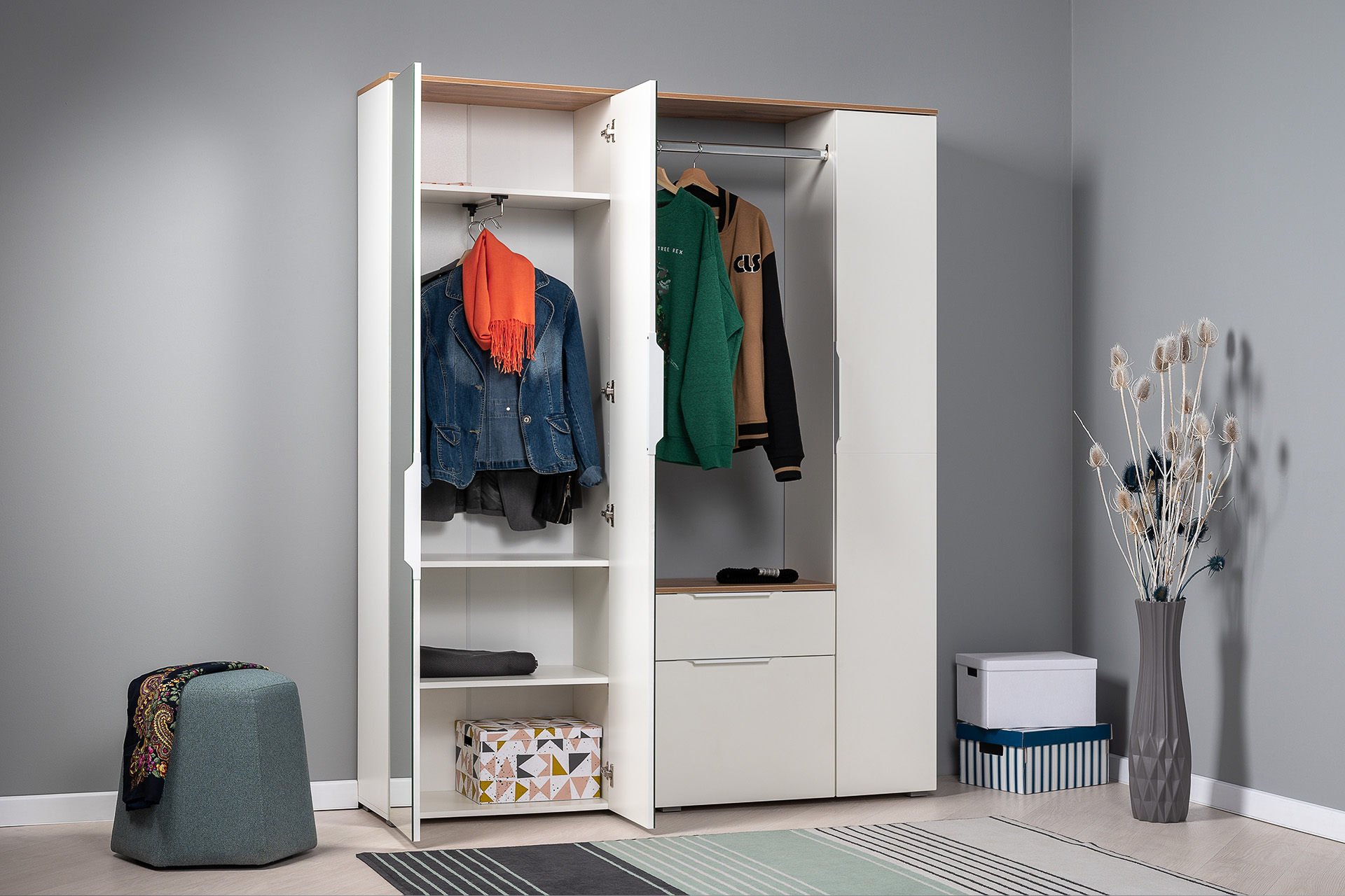 Прихожая Октава 15.123 белый PE шагрень, дуб вотан, белый PE шагрень ПВХ