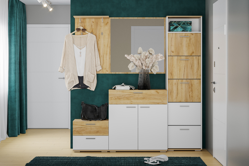 Прихожая Санти композиция 3 белый фасадный, дуб крафт золотой