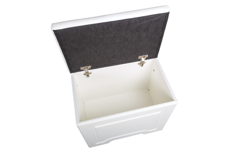 Пуф на колесах, подъемная крышка. Искусственная кожа белого цвета.