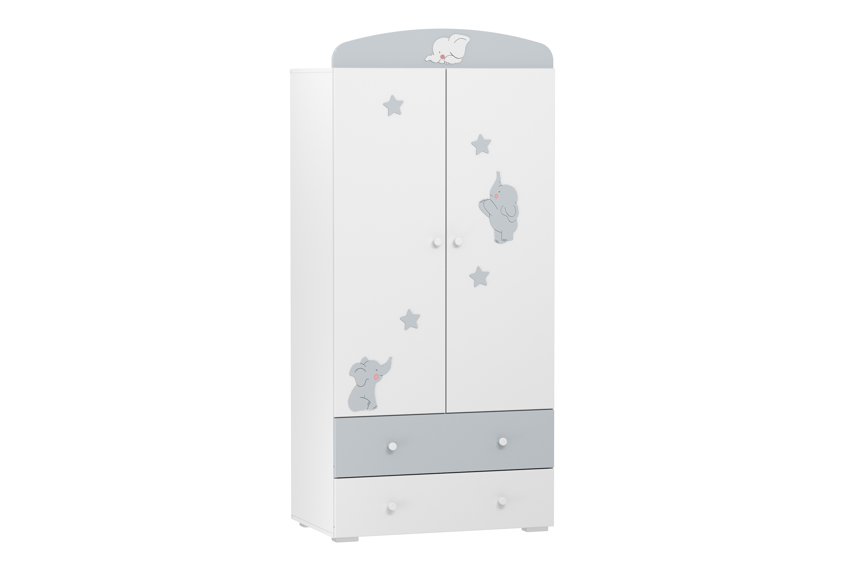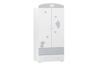 Шкаф для одежды Лилу (Слоники, Белый/Серый (эмаль) Белый Скандинавский) НМ 041.01