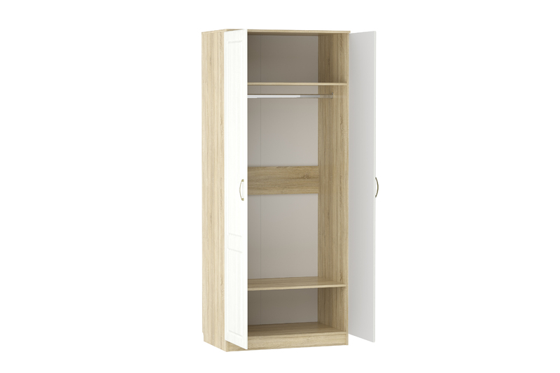 Двухстворчатый шкаф Оливия НМ 040.60 Ф поможет организовать хранение вещей в детской, гостиной, спальне или прихожей. Внутри модуля предусмотрены овальная штанга для одежды на вешалках. Широкие антресольная и нижняя полки подойдут для размещения коробок и аксессуаров. Классические глухие фасады надежно защитят содержимое шкафа от влаги и пыли.