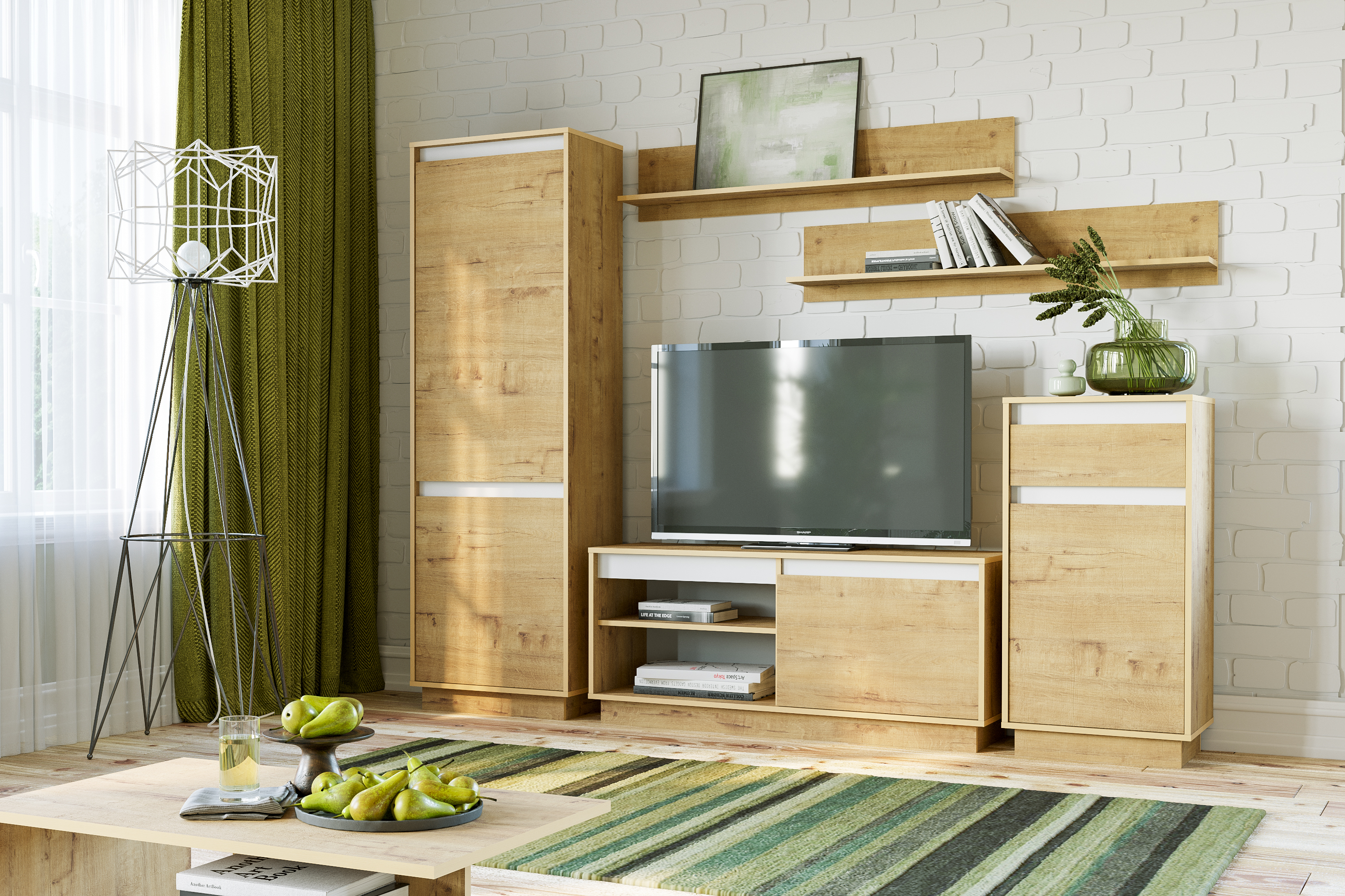 Гостиная Альба композиция 1 дуб золотой CRAFT, белый премиум, без подсветки