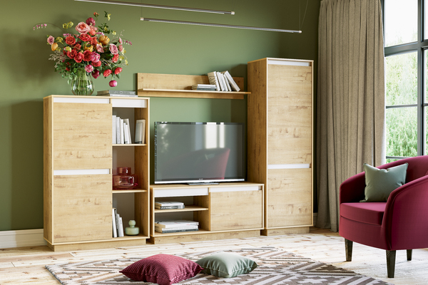 Гостиная Альба композиция 1 дуб золотой CRAFT, белый премиум, без подсветки