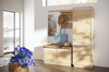 Компактный шкаф VIRGINIA НМ 011.80-02 поместится даже в самую маленькую гостиную, прихожую или спальню. За верхним фасадом модуля расположен просторный отдел с выдвижной штангой для одежды на вешалках-плечиках. За нижней дверью находится небольшое отделение с полкой для хранения одежды в сложенном виде. На фасадах шкафа отсутствуют ручки, что делает его дизайн современным и лаконичным.