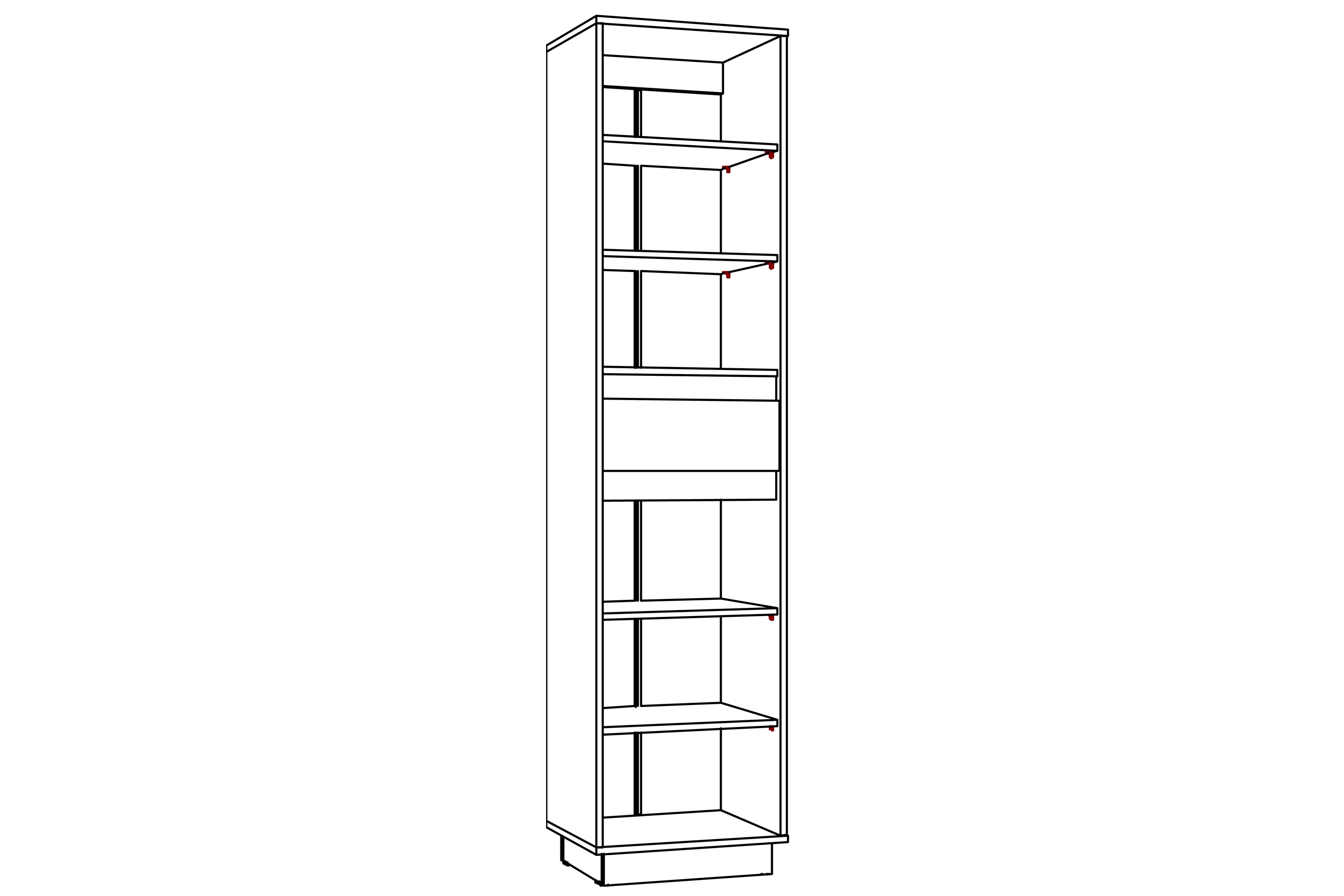 Шкаф VIRGINIA НМ 011.81 гармонично впишется в современную гостиную, спальню или прихожую в качестве отдельного элемента или в составе набора мебели. В верхней и нижней частях модуля находятся по две полки, которые скрыты за распашными фасадами. В центре шкафа расположен компактный выдвижной ящик, предназначенный специально для хранения самых важных вещей, таких как документы. Для каждой секции шкафа предусмотрен отдельный распашной фасад, что позволяет получить доступ только к нужной части содержимого модуля.