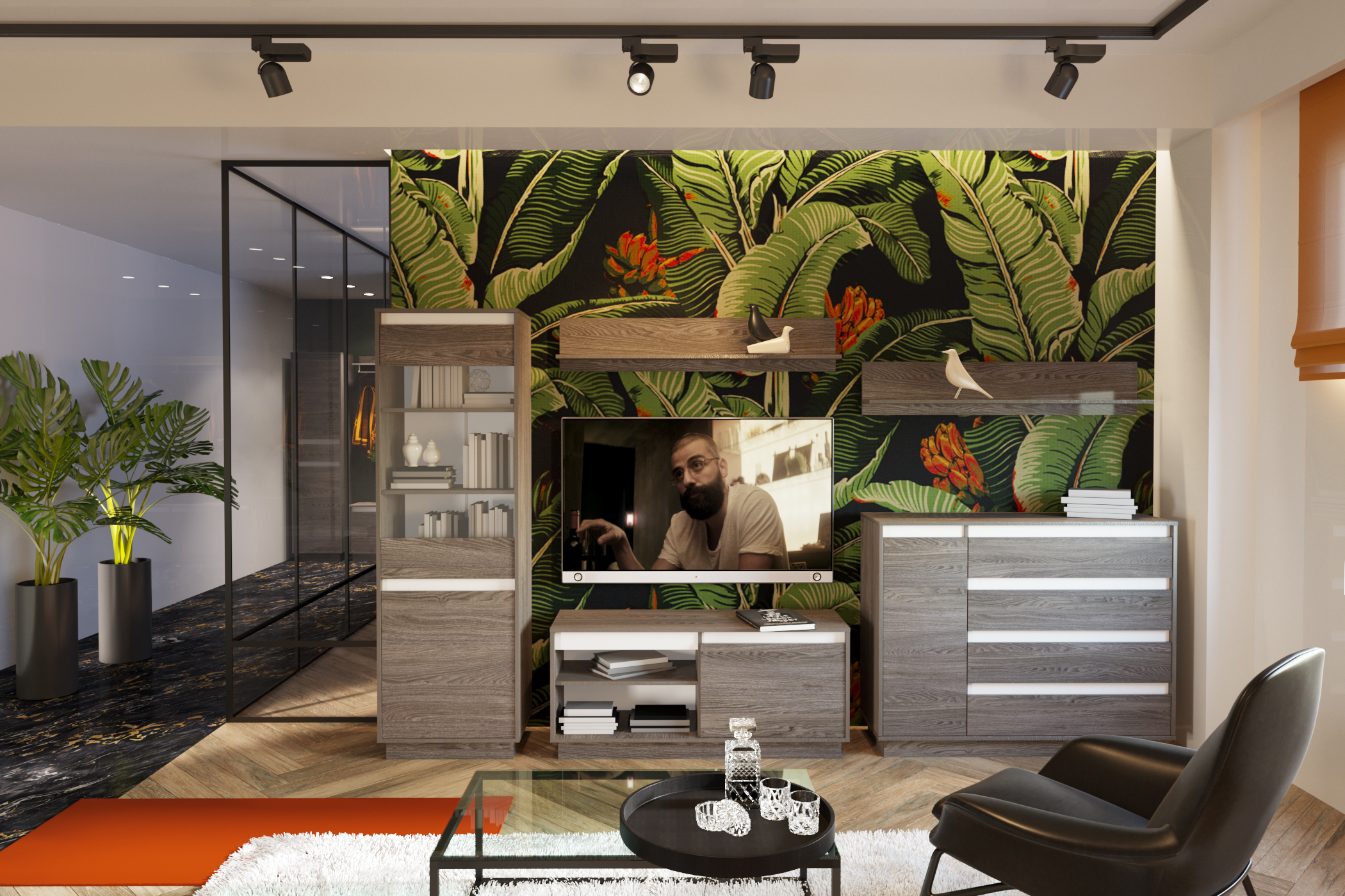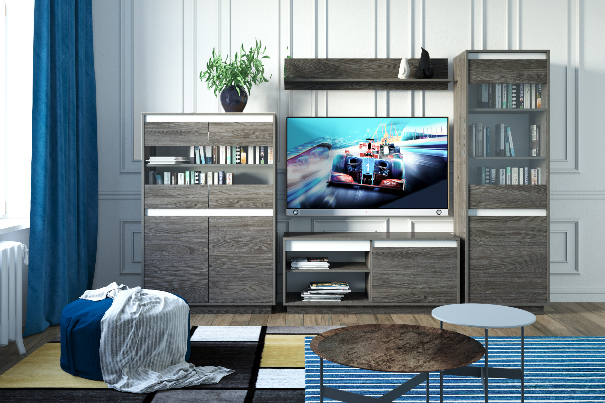 Гостиная Альба композиция 1 дуб золотой CRAFT, белый премиум, без подсветки