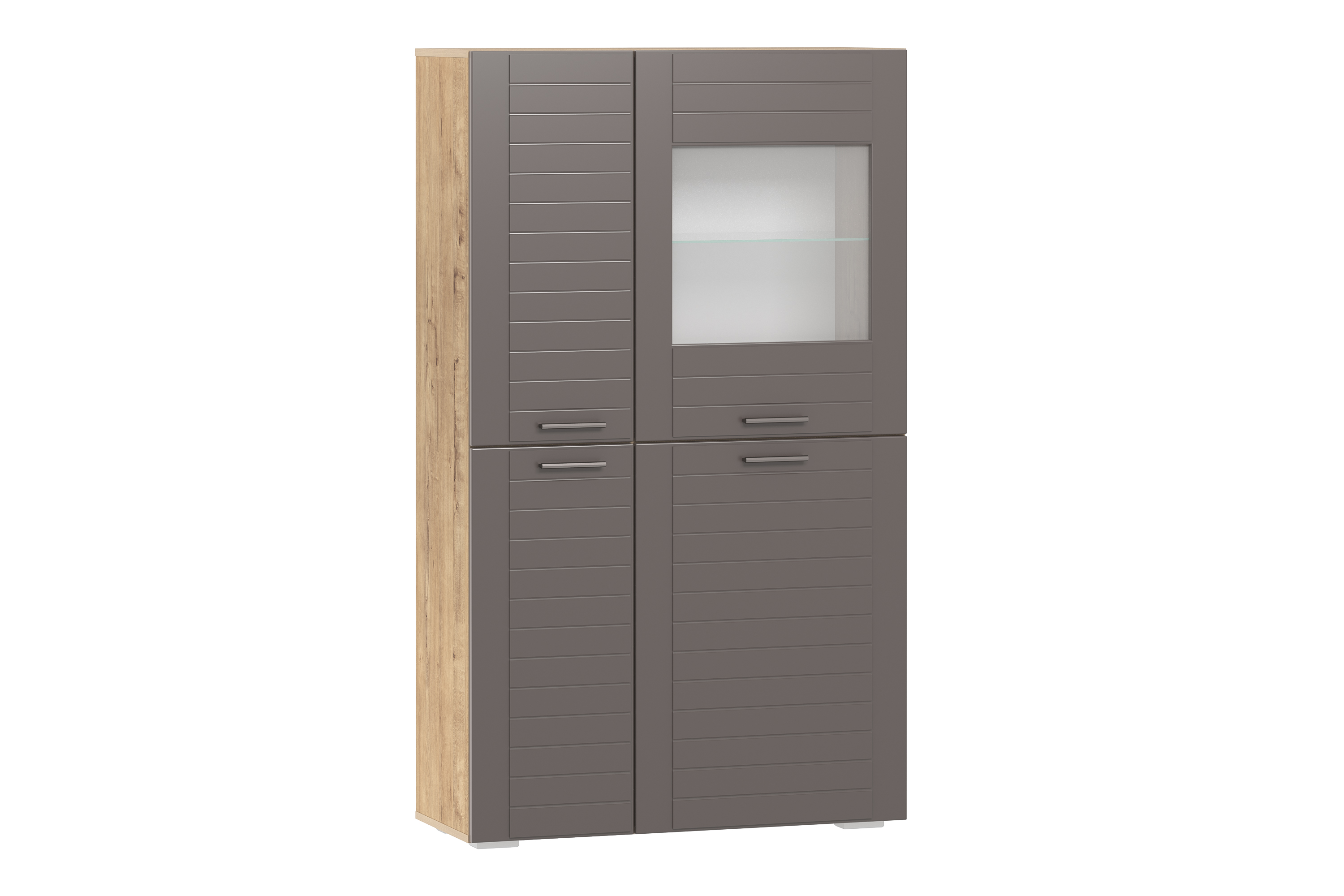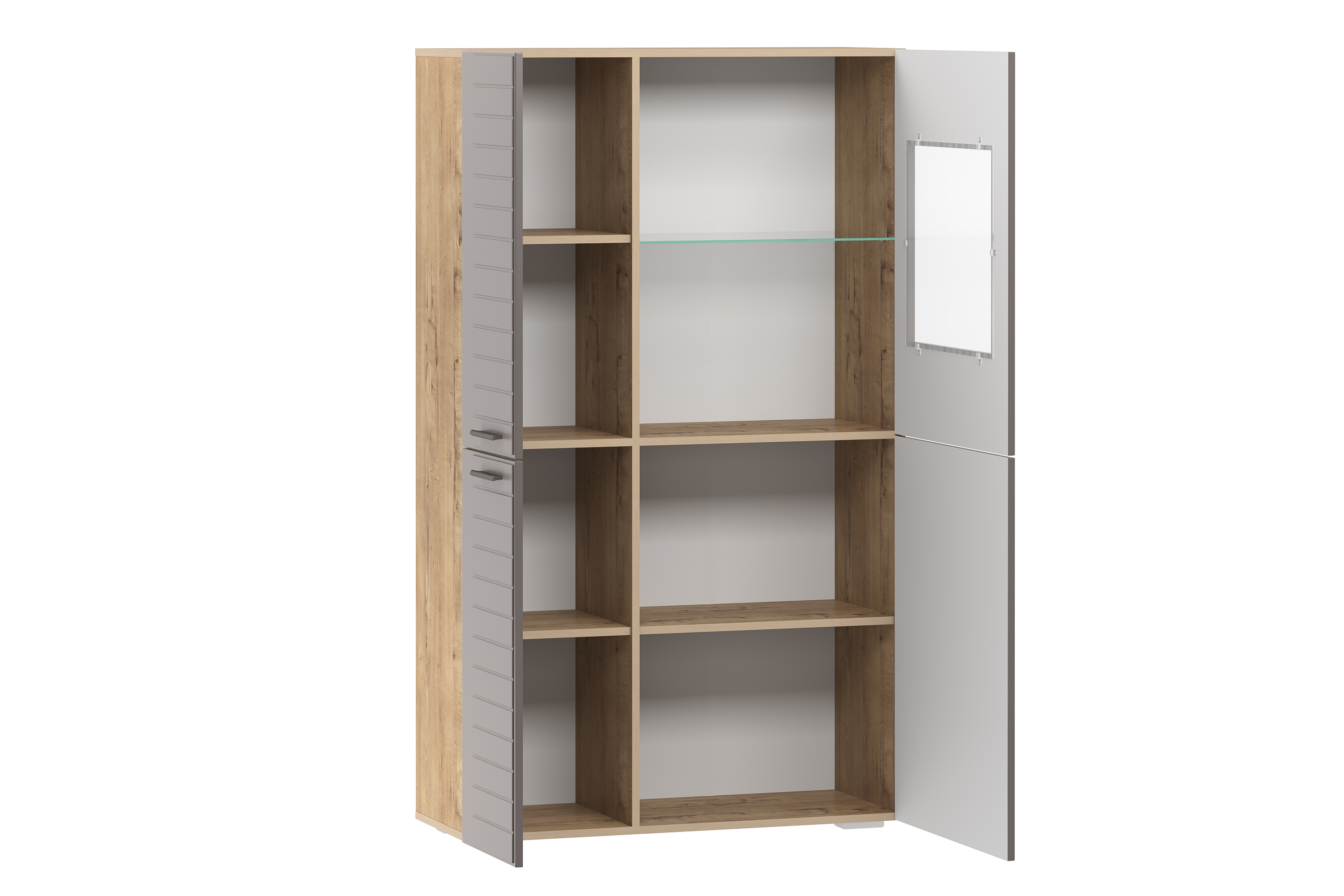 В дизайне комбинированного шкафа Livorno НМ 011.48-01 сочетаются древесная текстура и трендовые оттенки фасадов. Стеклянный элемент на верхней створке визуально облегчает конструкцию модуля. В состав шкафа входят стеклянные полки и полки из ЛДСП, за счет чего он подходит для хранения самых разнообразных вещей. Модуль оснащен четырьмя створками, что позволяет разместить одежду, книги и посуду в его определенной части. Благодаря этому можно открыть только ту дверцу, за которой находится нужная в данный момент вещь, что сократит время на ее поиск.