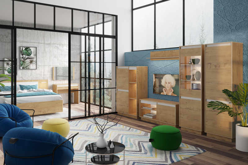 Гостиная Альба композиция 1 дуб золотой CRAFT, белый премиум, без подсветки