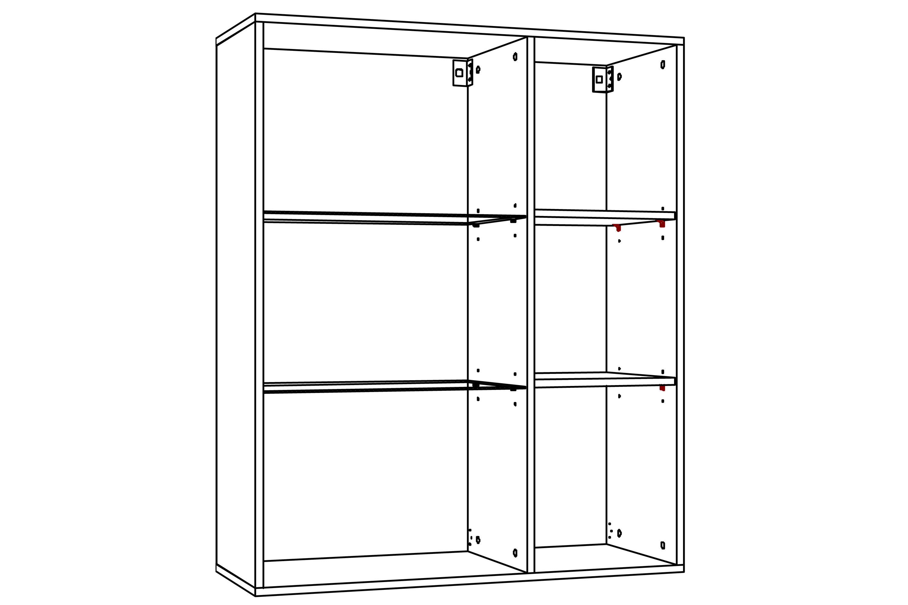 Двухстворчатый навесной шкаф Livorno НМ 011.29 обладает оригинальным дизайном. Один из фасадов декорирован вставкой из матового стекла, которая делает едва заметными те предметы, что находятся за ней. За дверцей с вставкой находится отдел с двумя стеклянными полками. В этой части модуля будет красиво смотреться посуда. В закрытом отделении с двумя полками можно хранить книги или документы.