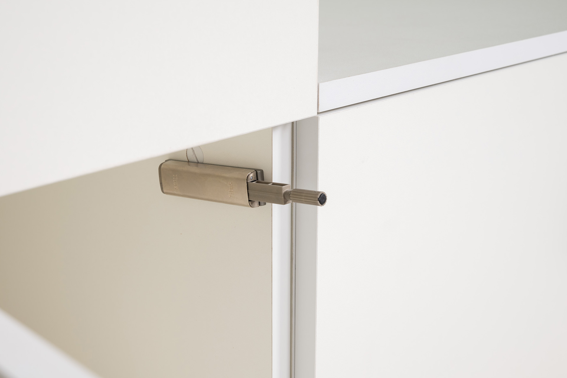 Модули универсальны и сочетаются между собой. Открытые и закрытые ниши для хранения, защитные пластиковые демпферы, съемные полки, направляющие полного выдвижения в ящиках – комфорт продуман до мелочей.