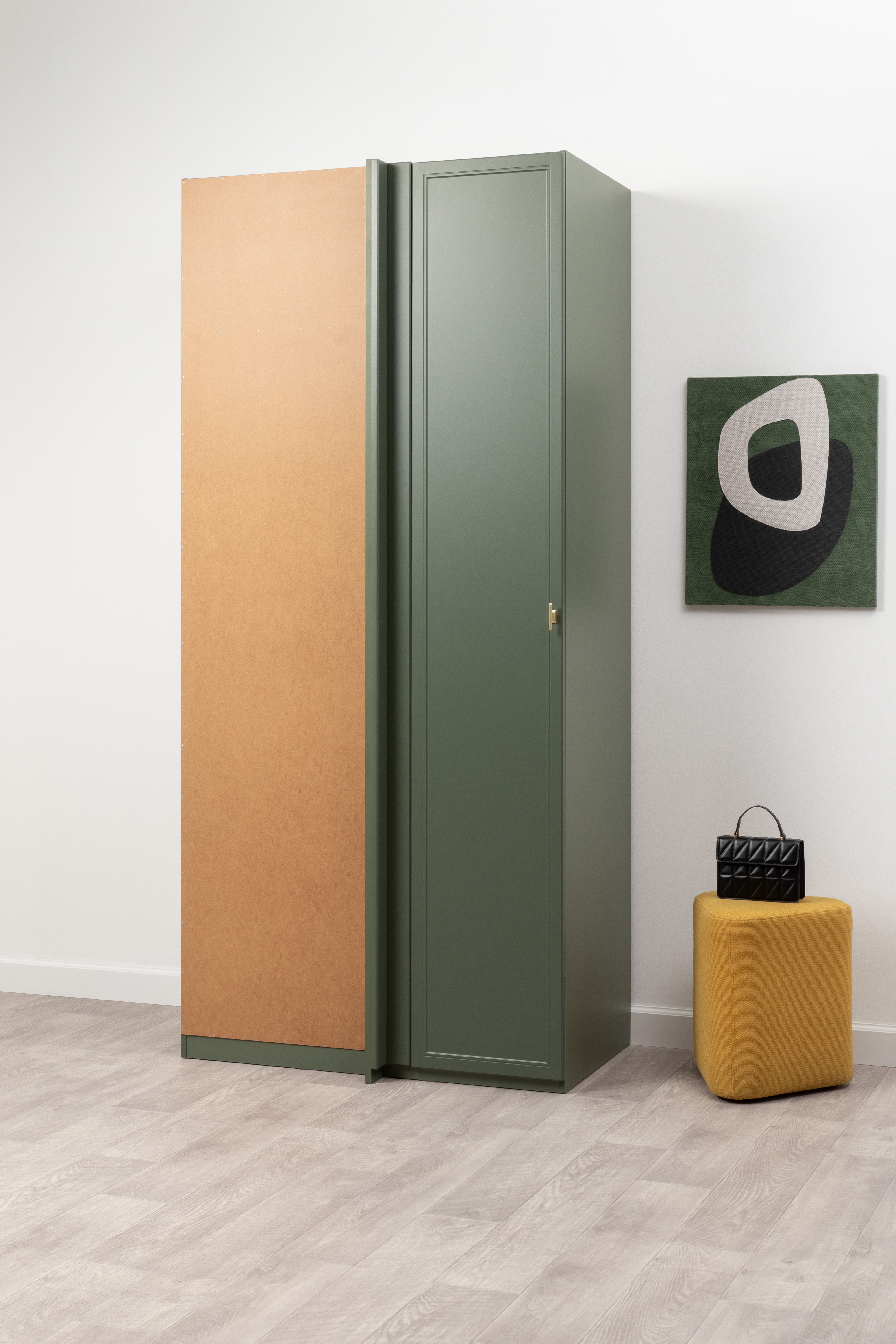 Шкаф угловой Марион 16.339 дымчатый зеленый K521, олива шагрень AG 1050 ПВХ (собирается на любую сторону)