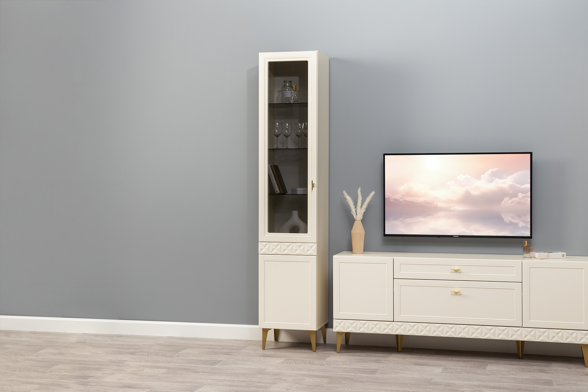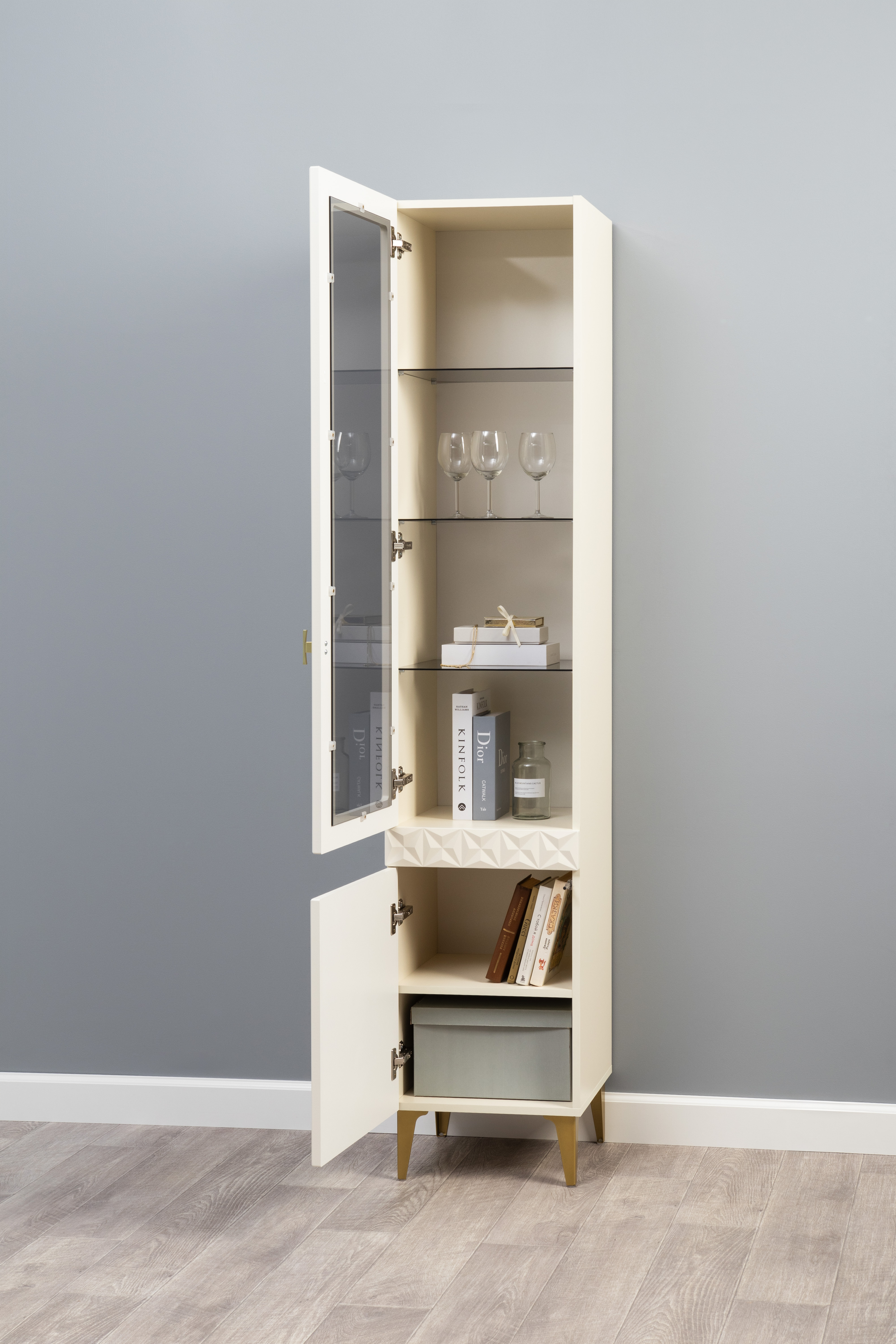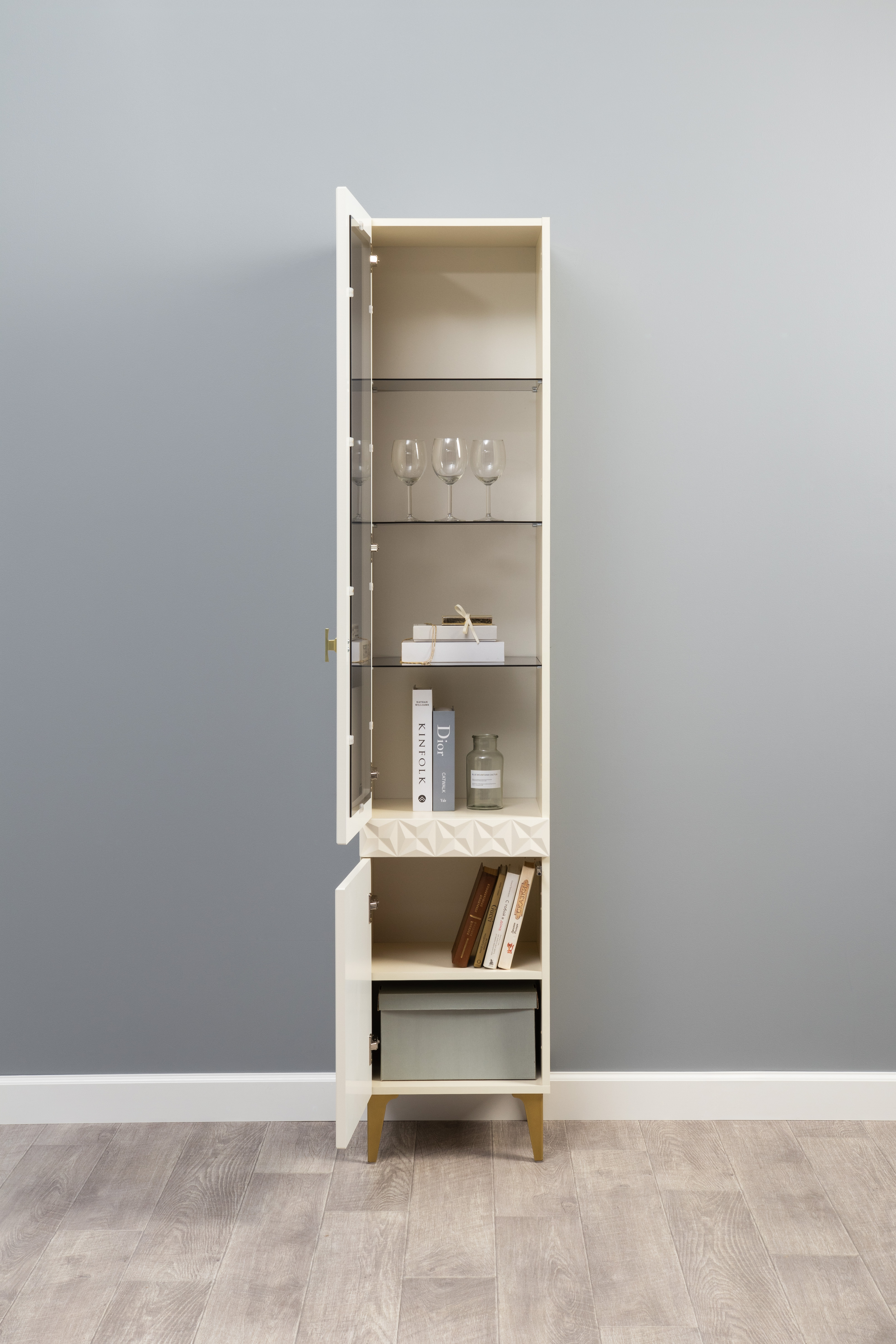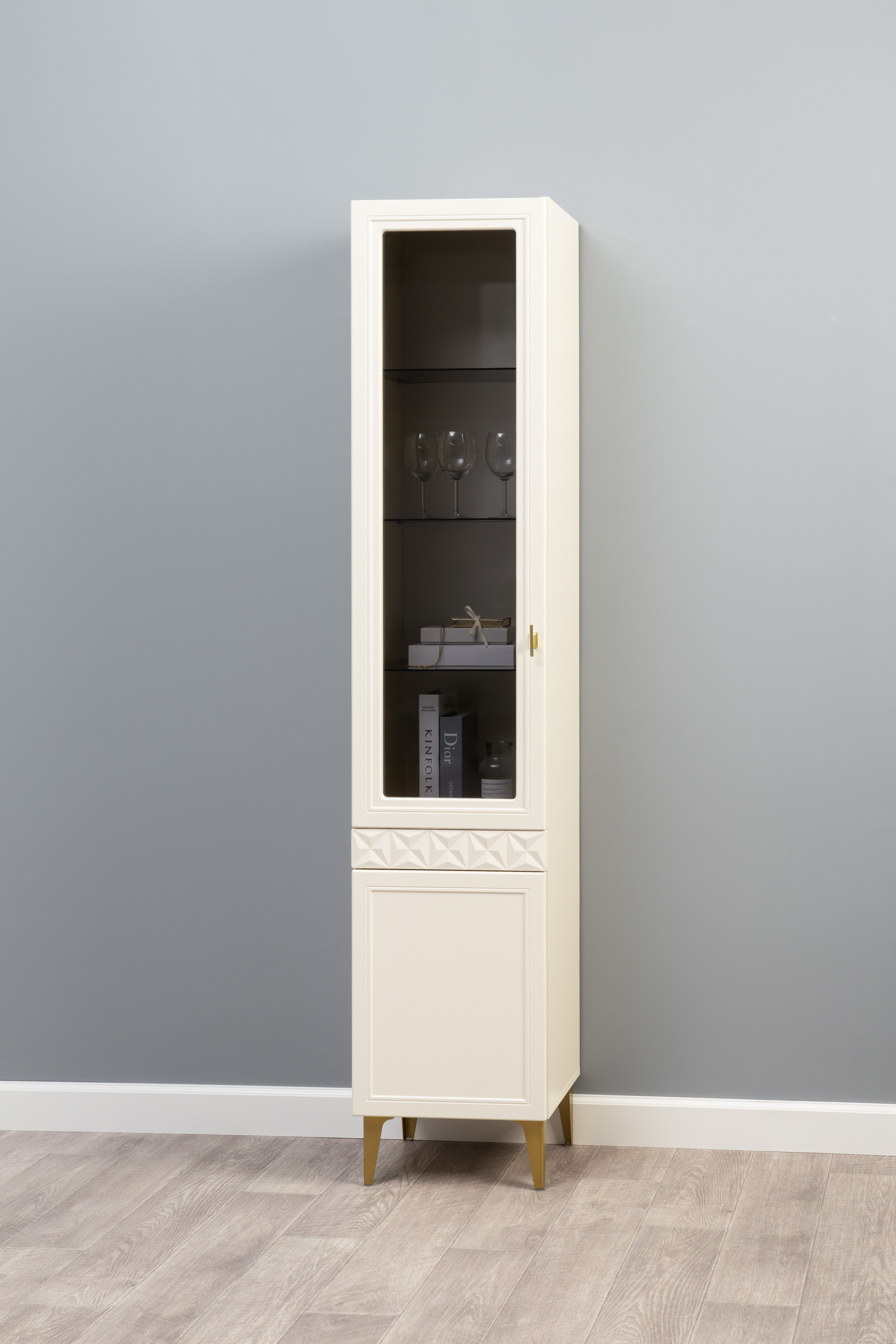 Шкаф-витрина Марион 16.397.01 слоновая кость С341 PE, слоновая кость 6898 ПВХ (собирается на любую сторону)