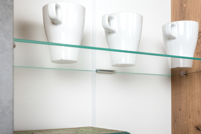 Шкаф-витрина в гостиную Ливерпуль белый, ясень ваниль ПВХ