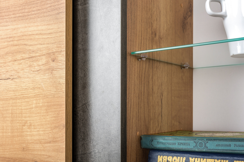 Шкаф-витрина в гостиную Арчи 03.263 дуб золотой CRAFT, камень темный