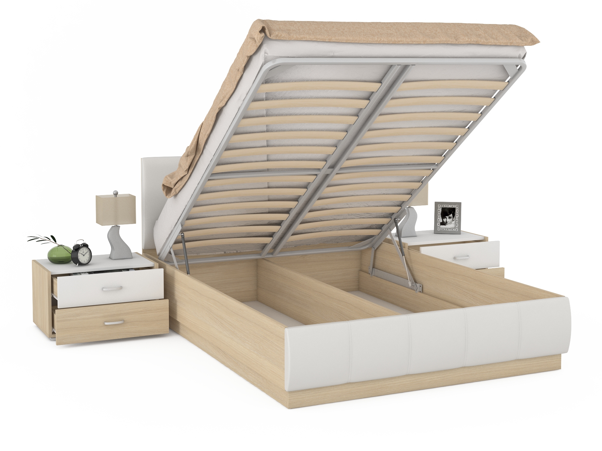 В стоимость кровати входит ортопедичесское основание и подъемный механизм. Матрас Вы можете выбрать в разделе Матрасы.