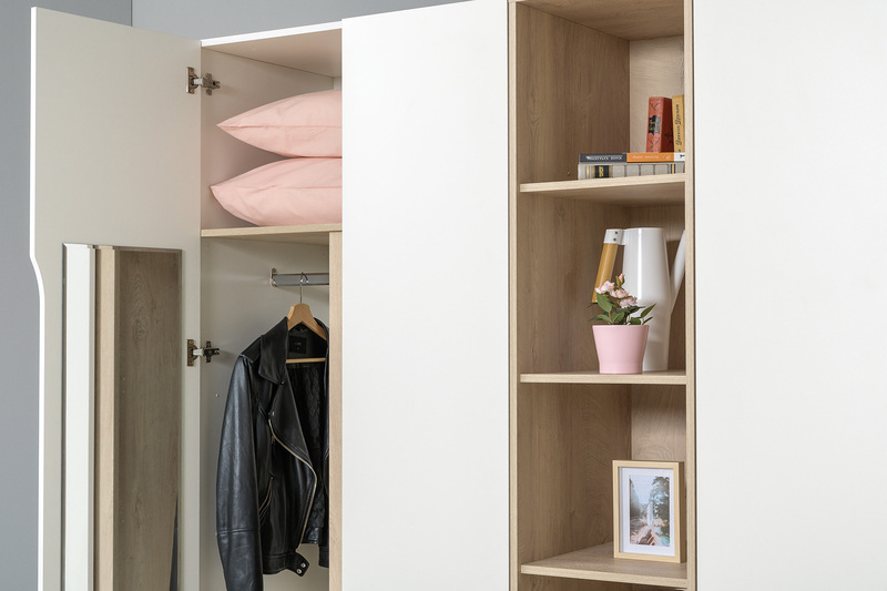 Шкаф двухстворчатый Муссон 13.198 белый PE шагрень, дуб эндгрейн элегантный