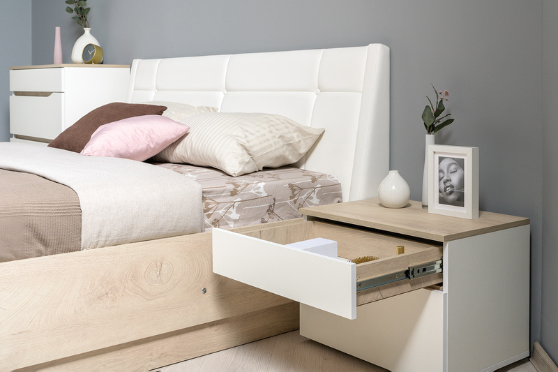 Тумба прикроватная Муссон 16.03 белый PE шагрень, дуб эндгрейн элегантный