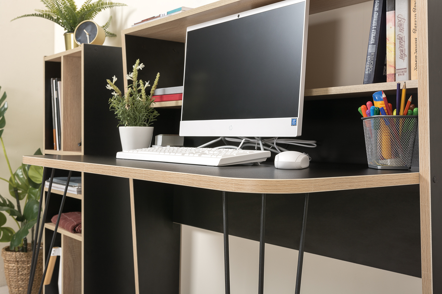 Стол компьютерный Базис 3 12.66 черный, дуб сонома