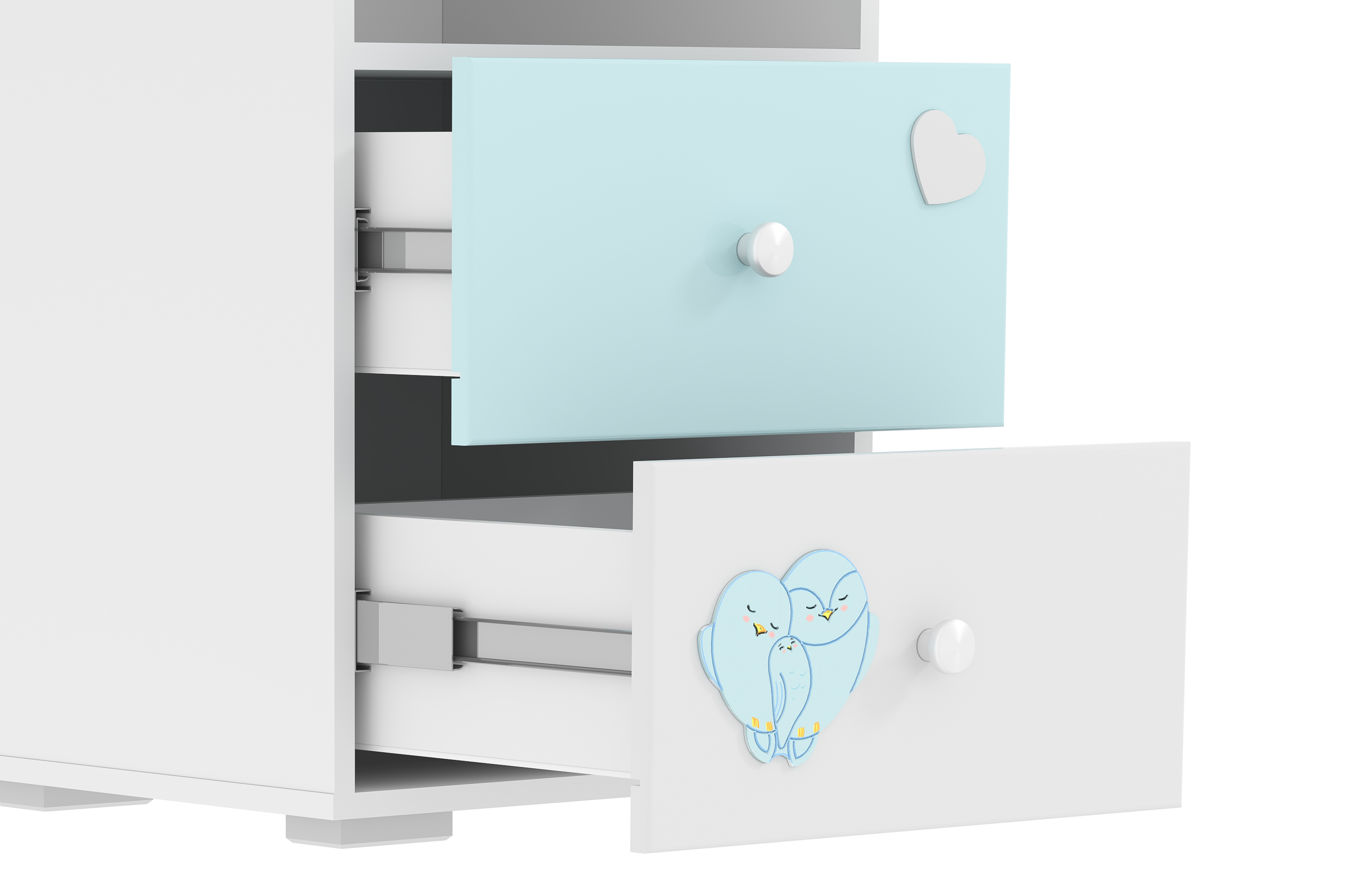 Стеллаж Лилу (Птички, Белый/Голубой (эмаль), Белый Скандинавский) HM 041.03
