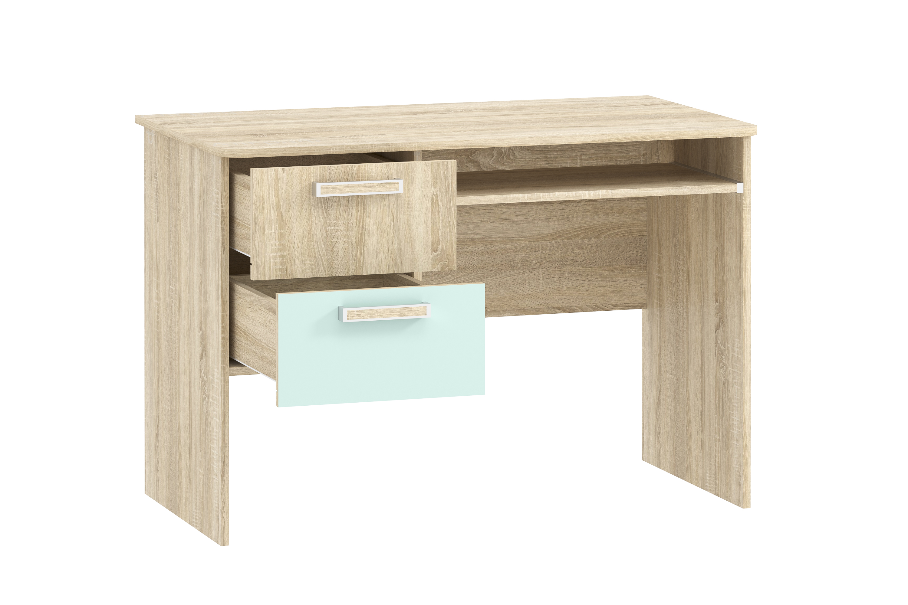 Стол для компьютера НМ 009.19-05 М2 поможет обустроить комфортный учебный уголок в детской. На рабочей поверхности модуля достаточно места для размещения стационарного компьютера, ноутбука.Удобная выдвижная полка для клавиатуры позволит сохранить место на рабочем столе.. Закругленные углы столешницы делают эксплуатацию модуля безопасной для ребенка и взрослого. По окончании занятий ребенок сможет убрать книги и тетради в выдвижные ящики для поддержания порядка на рабочем месте.
