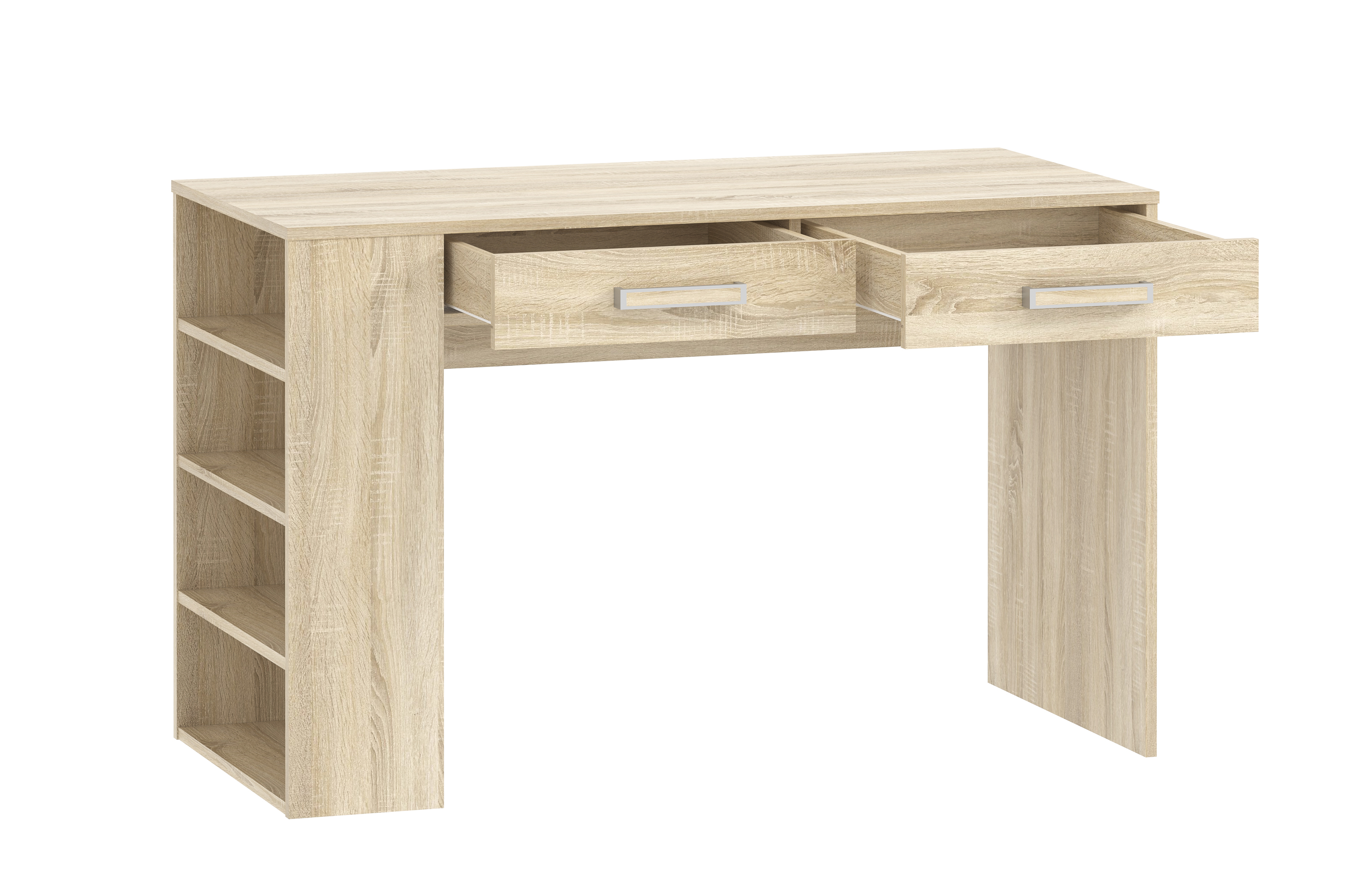 Стол предназначен для тех, кто любит практичность и комфорт. Стол выполнен из качественного ЛДСП цвета Сонома, который идеально подходит для детских коллекций «Акварель» и «Фанк». В конструкция стола предусмотрены боковые полочки, которые прекрасно выполняют роль мини-стеллажа, и где красиво и удобно разместятся учебники и любимые книжки. На рабочей поверхности модуля достаточно места для размещения не только письменных принадлежностей, но и ноутбука. По окончании занятий ребенок сможет убрать книги и тетради в выдвижные ящики для поддержания порядка на рабочем месте.