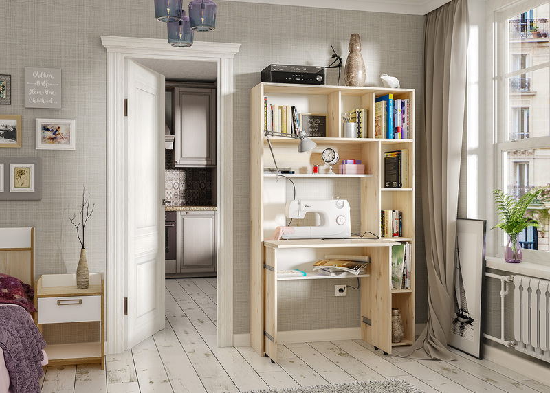 Стол с системой хранения Комфорт 12.94 гаскон пайн светлый, белый