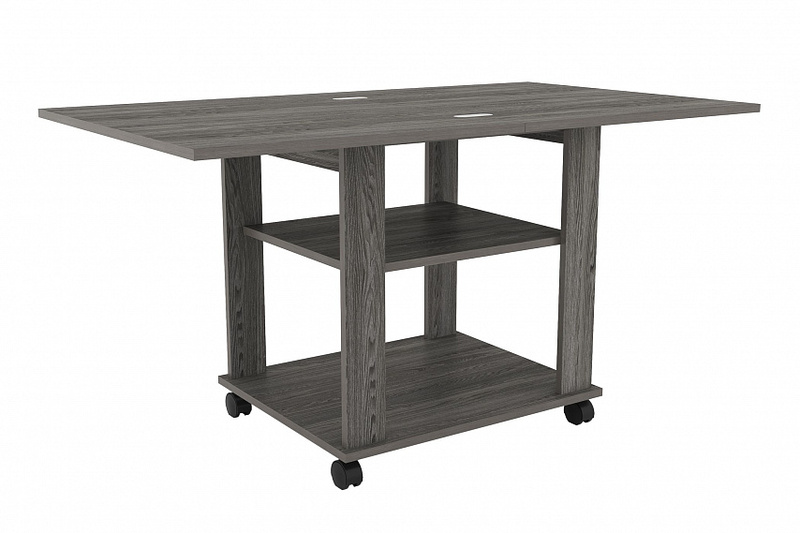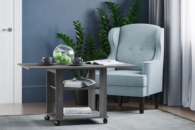 Благодаря поворотному механизму и подвижному соединению столешниц его можно раскладывать для увеличения площади. Если планируется частое использование мебели в различных комнатах, то колеса облегчат перемещение. Все механизмы конструкции обладают простым использованием.