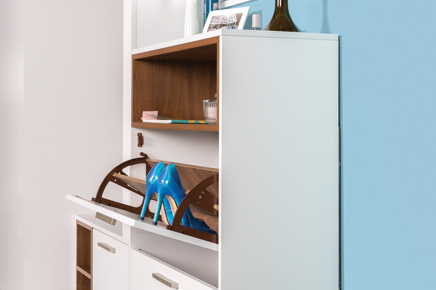 Тумба для обуви Лайт 08.136 (обувница) белый премиум, орех селект каминный