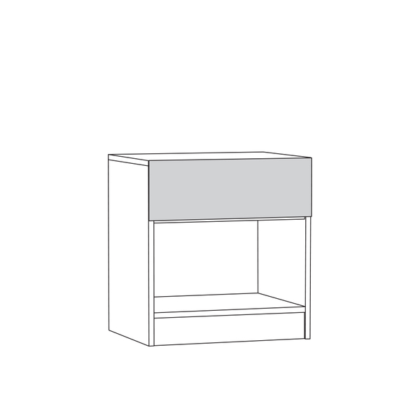 Выдвижной ящик на шариковых направляющих полного выдвижения. Сторона открывания фасада определяется при сборке.