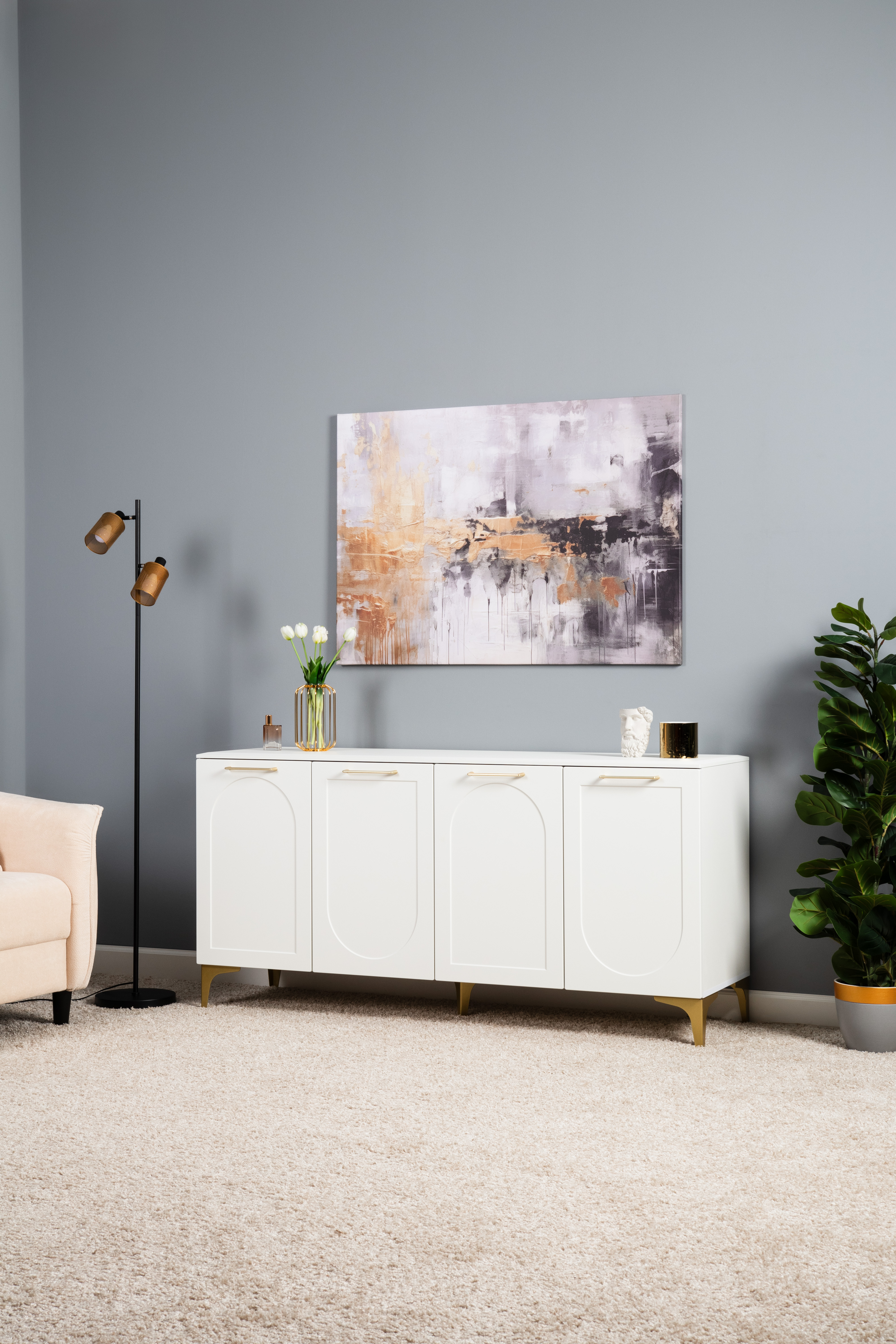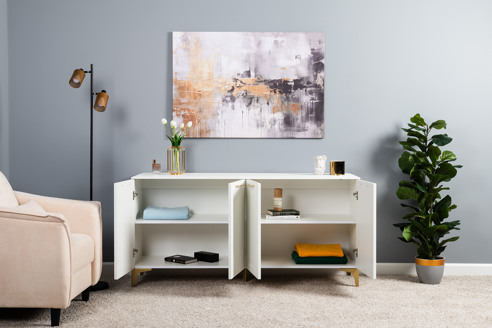 Тумба под ТВ в гостиную Бэль 10.91 белый премиум, дуб золотой CRAFT