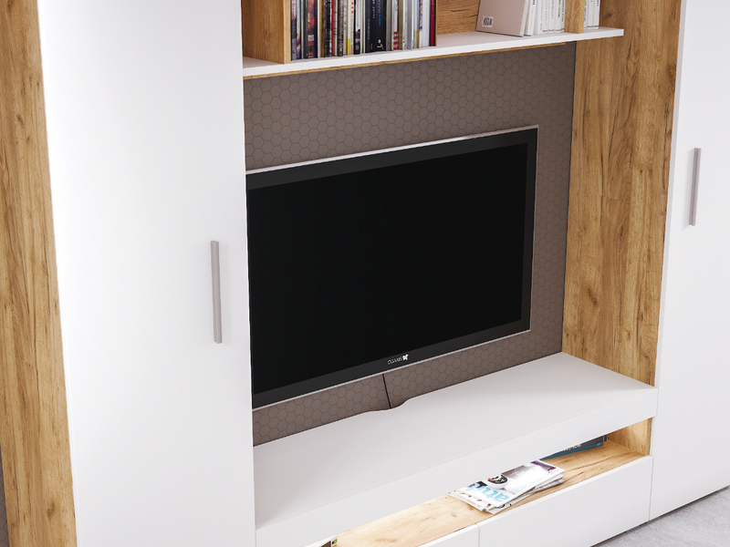 Тумба под ТВ в гостиную Бэль 10.91 белый премиум, дуб золотой CRAFT