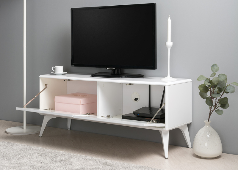 Тумба под ТВ в гостиную Спейс 13.269 белый премиум, белый глянец ПВХ