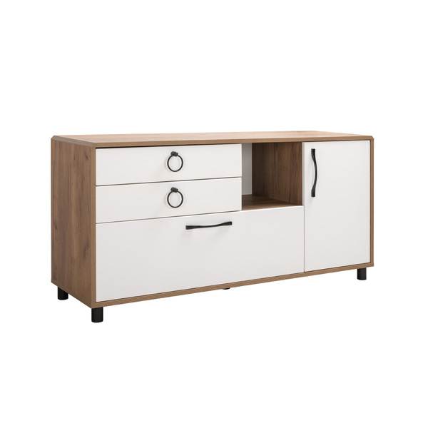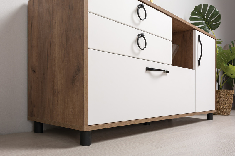 Тумба под ТВ в гостиную Бэль 10.91 белый премиум, дуб золотой CRAFT