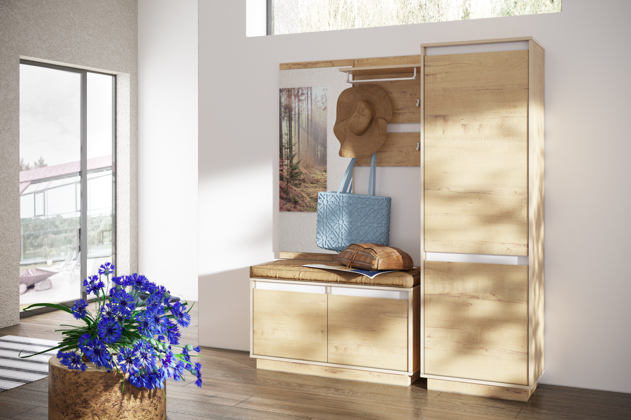 Тумба для обуви в прихожую Юнона дуб белый CRAFT, серый шифер