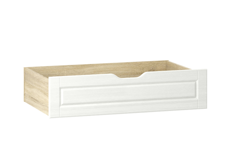 Бельевой ящик Оливия НМ 040.39-02 Х станет функциональным дополнением к кровати НМ 040.34-02 Х из одноименной коллекции. У модуля предусмотрена интегрированная ручка вместо накладной, что делает его эксплуатацию безопасной. На дно модуля устанавливаются колесики, которые предотвращают повреждения напольного покрытия при выдвижении ящика.