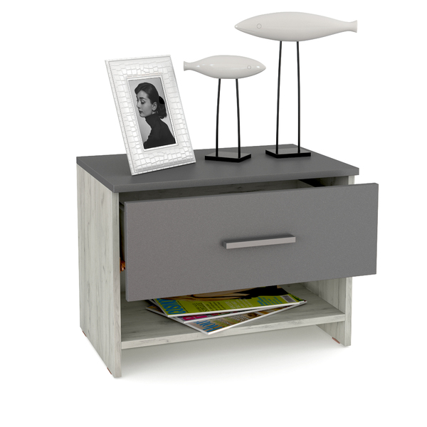 Тумба прикроватная Лакки бук песочный, дуб тортуга ПВХ, белый глянец ПВХ
