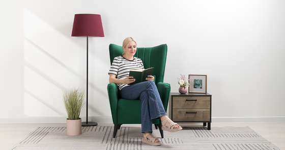 Кресло на колесах Оптима ультра Хоум ткань рогожка синяя, крестовина пластик, подлокотники с мягкими накладками, механизм качания